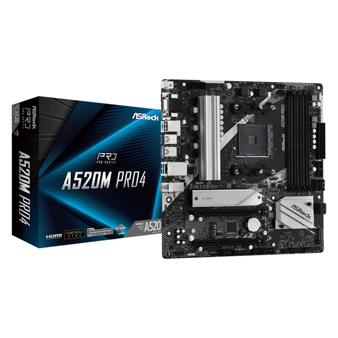ASRock A520M-Pro4, AMD A520, AM4, DDR4, mATX 90-MXBDU0-A0UAYZ