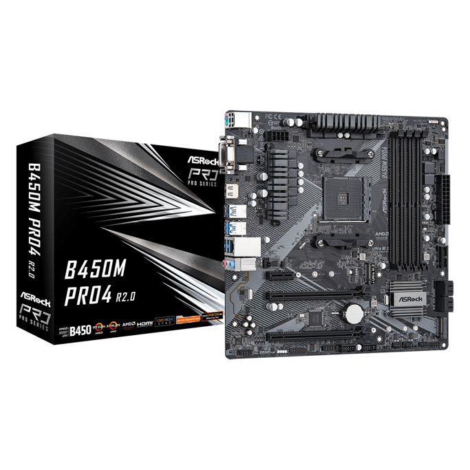 ASRock B450M Pro4 R2.0, AMD B450, AM4, DDR4, mATX, 90-MXBEG0-A0UAYZ