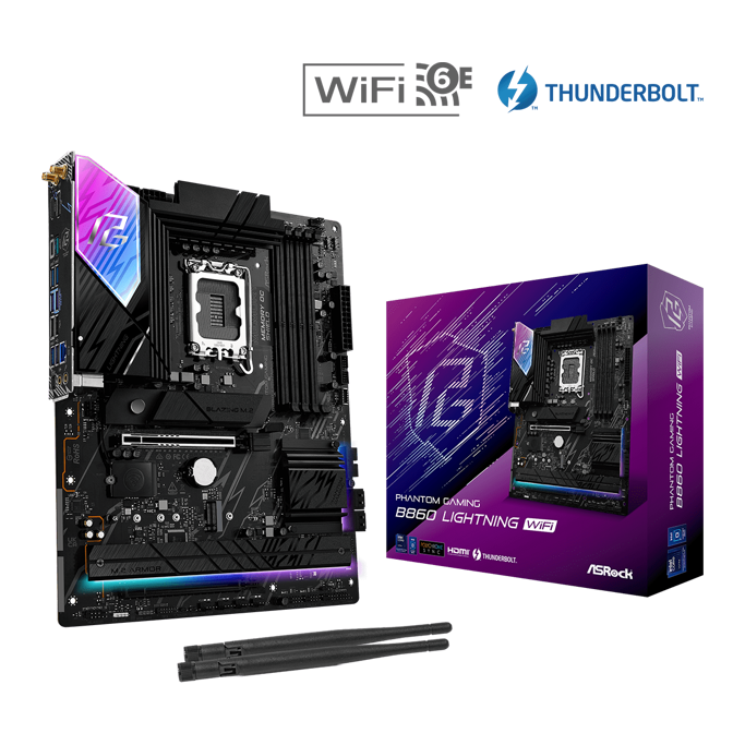 ASRock B860 Lightning WIFI , Intel B860, LGA 1851, DDR5, ATX, 90-MXBR20-A0UAYZ