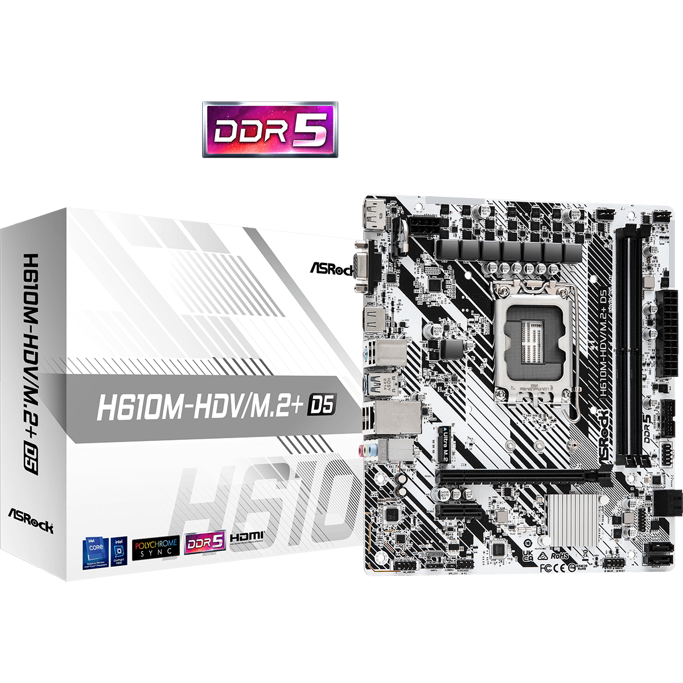 ASRock H610M-HDV/M.2+ D5, Intel H610, LGA 1700, DDR5, mATX, 90-MXBM50-A0UAYZ