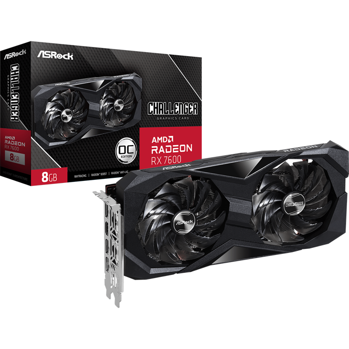 Asrock RX7600 Challenger OC, 8GB GDDR6, AMD Radeon, RX7600 CL 8GO, 90-GA41ZZ-00UANF