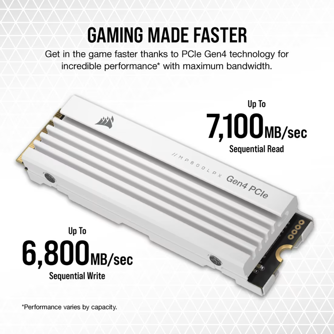 CORSAIR SSD 2TB, Gen4 MP600 PRO LPX White, NVMe, 7100/6800 MB/s, CSSD-F2000GBMP600PLPW