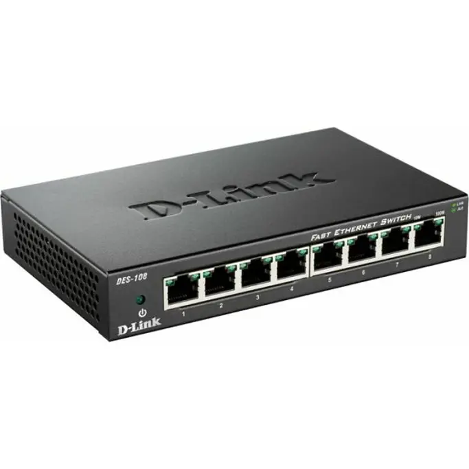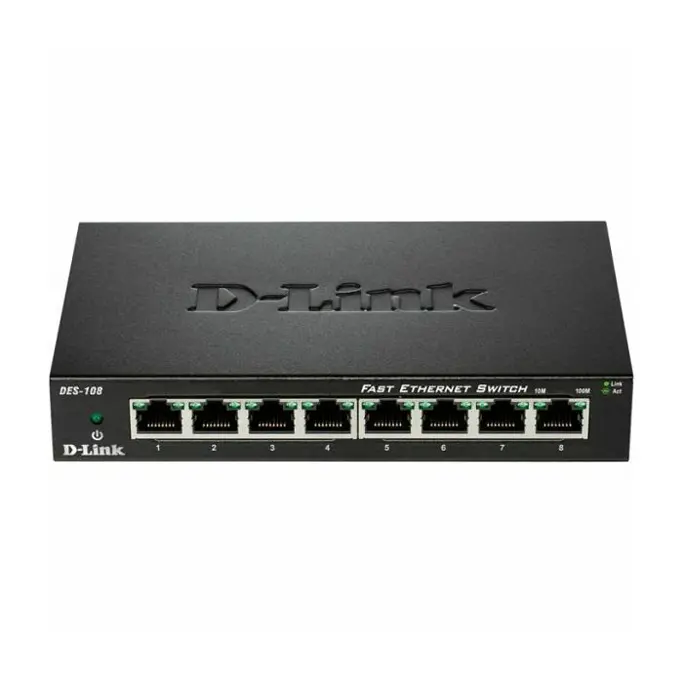 D-Link Switch DES-108, 8-Port, 10/100 Mbps, Fast Ethernet, Unmanaged, metalno kućište, DES-108/E