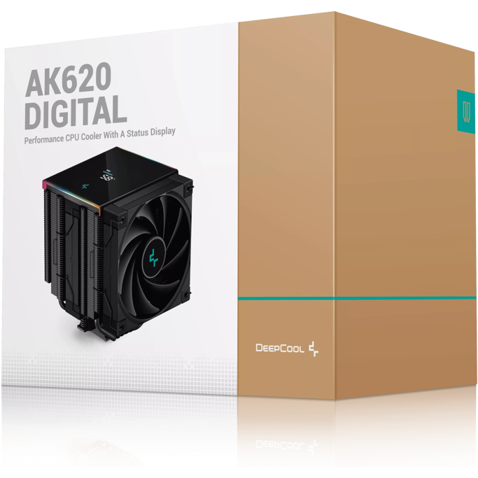 DeepCool cooler AK620 Digital, LCD, ARGB, Intel/AMD, 2x120mm, TDP 260W, Black, R-AK620-BKADMN-G
