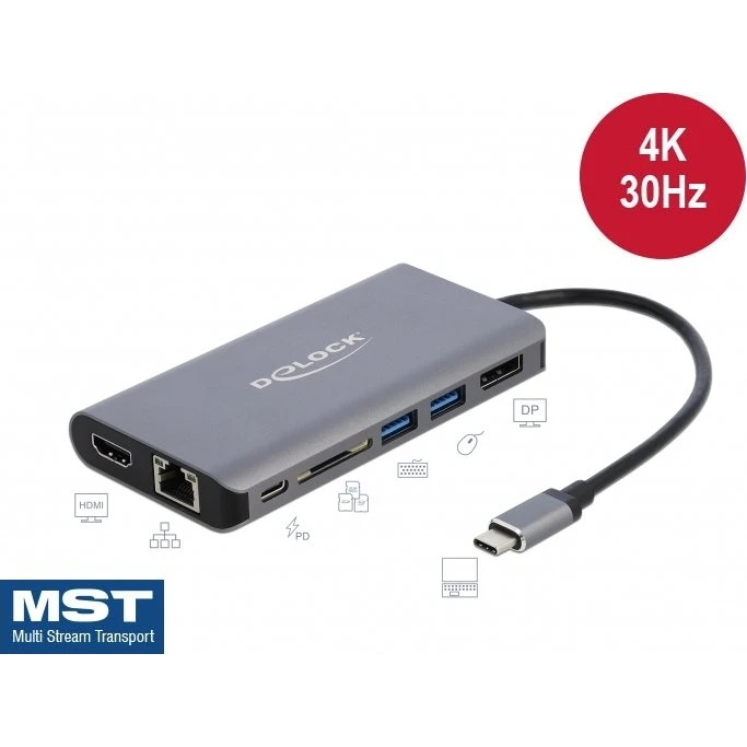 Docking station Delock USB Type-C 4K, HDMI, DP, USB, SD, LAN, PD 3.0, 87683