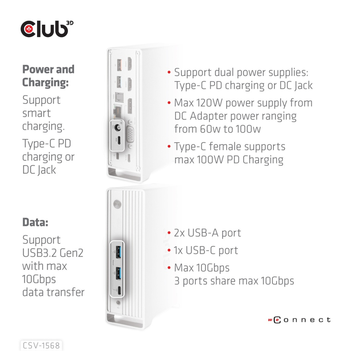 Docking station Club3D, USB Type-C, USB-A, HDMI, DP, RJ45, Audio/Mic, Toslink, CSV-1568