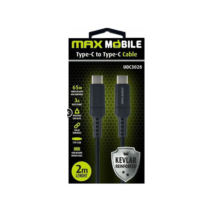 Kabel USB 2.0, 2m, USB-C/USB-C M/M, Maxmobile UDC3028 Kevlar, 3A/65W, Crni