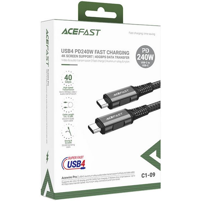 Kabel USB Acefast C1-09 1m USB-C/USB-C, 48V/5A max (PD240W), crni