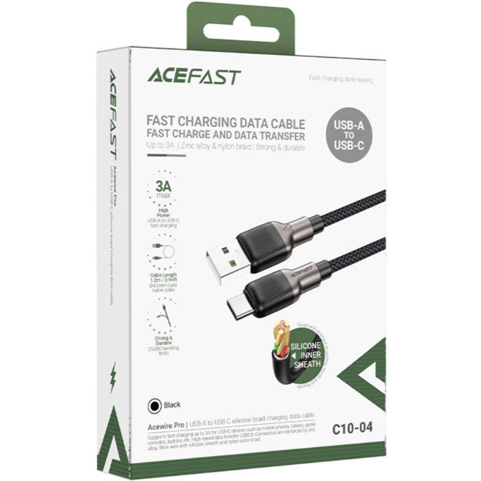 Kabel USB Acefast C10-04 1.2m USB-A/USB-C, 3A, crni
