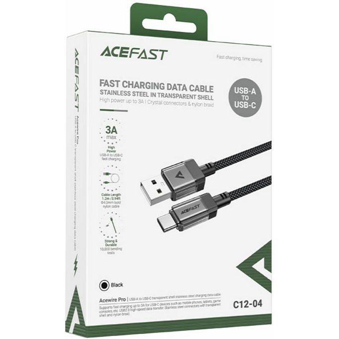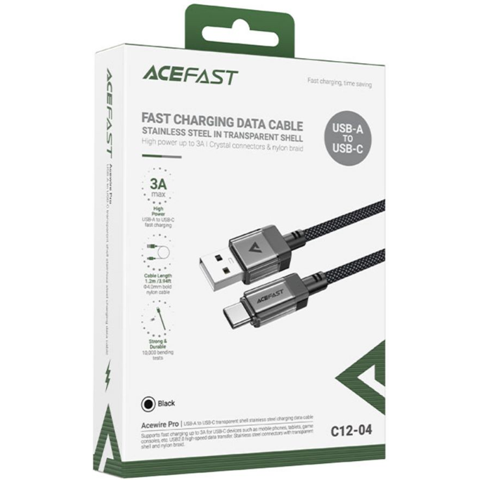 Kabel USB Acefast C12-04 1.2m USB-A/USB-C, 3A max, crni