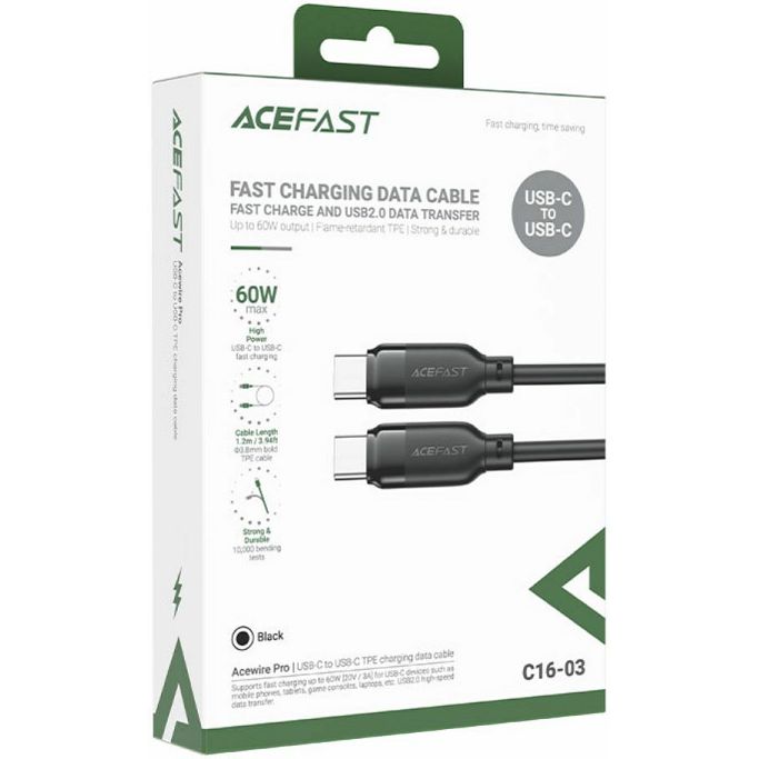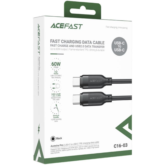 Kabel USB Acefast C16-03 1.2m USB-C/USB-C, 20V/3A max (60W), crni