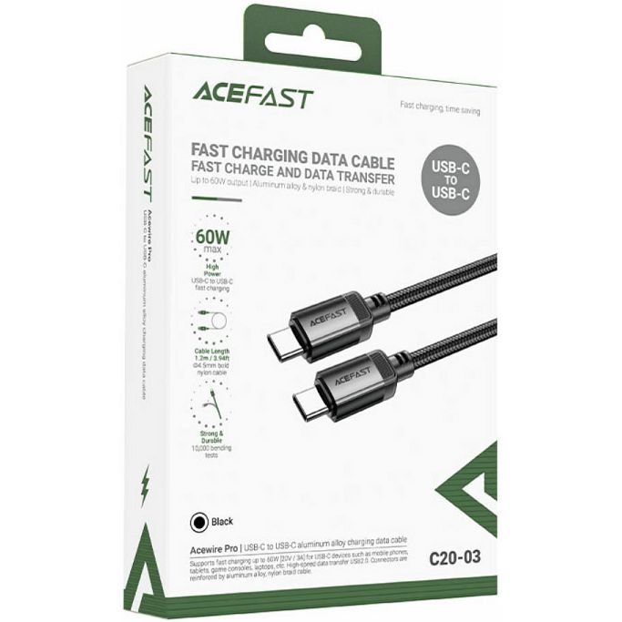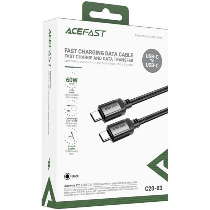 Kabel USB Acefast C20-03 1.2m USB-C/USB-C, 20V/3A max (60W), crni