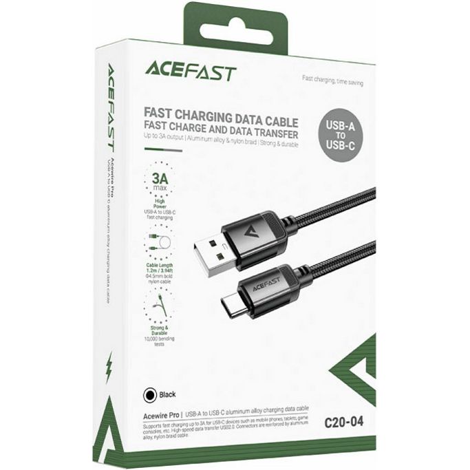 Kabel USB Acefast C20-04 1.2m USB-A/USB-C, 3A max, crni