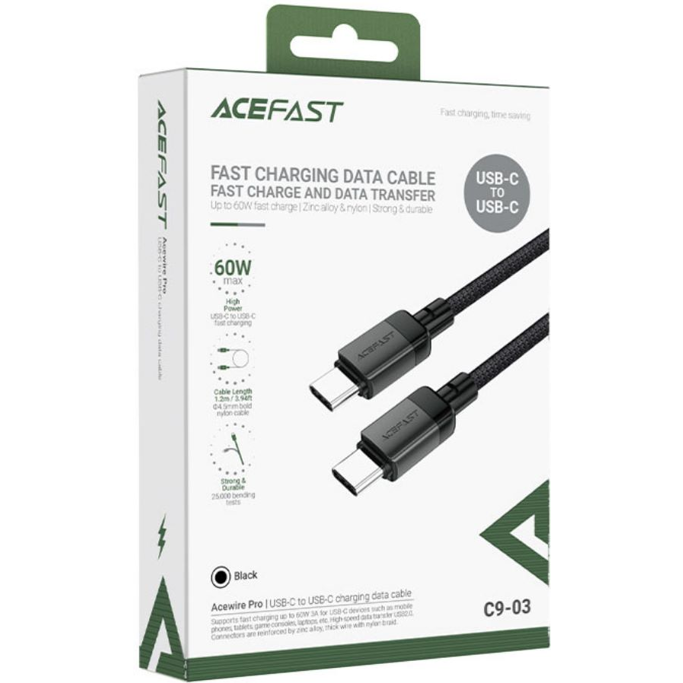 Kabel USB Acefast C9-03 1.2m USB-C/USB-C, 20V/3A max (PD60W), crni