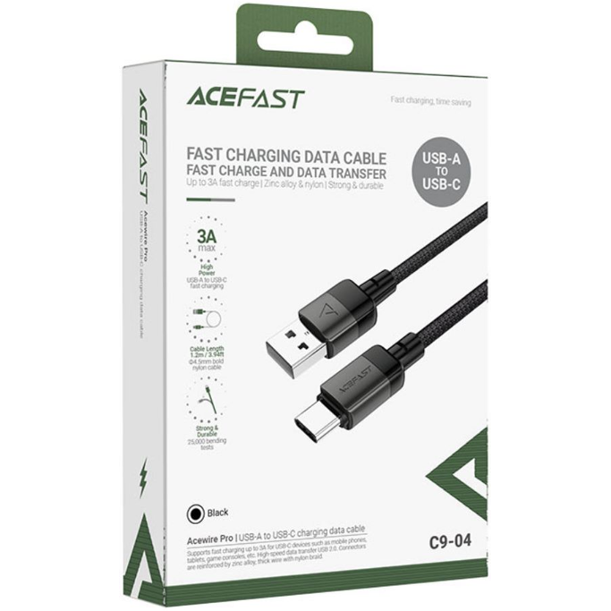Kabel USB Acefast C9-04 1.2m USB-A/USB-C, 3A, crni