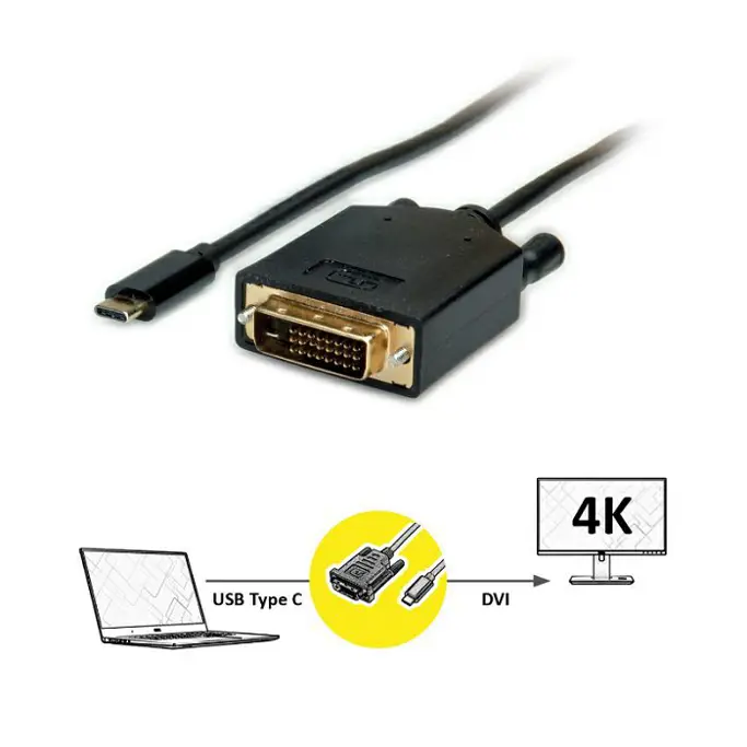 Kabel USB Type-C/DVI, 1m, Roline, 11.99.5831