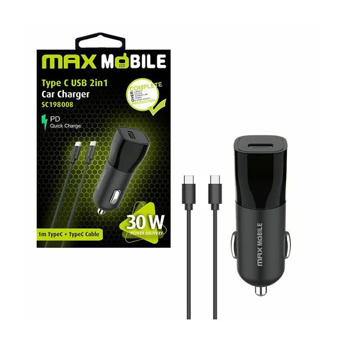 Auto adapter Maxmobile, PD QC3.0, USB-C, SC-198008, USB-C kabel, 30W