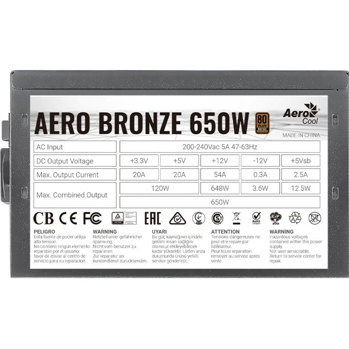 Napajanje Aerocool 650W AERO, 80 PLUS Bronze, ACPB-AR65AEC.11
