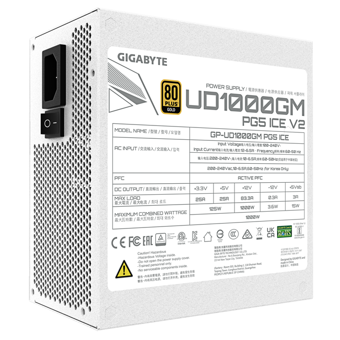 Napajanje Gigabyte 1000W GP-UD1000GM PG5 V2 ICE, White, Full modular, 80 PLUS Gold, ATX 3.1, GP-UD1000GM PG5 ICE