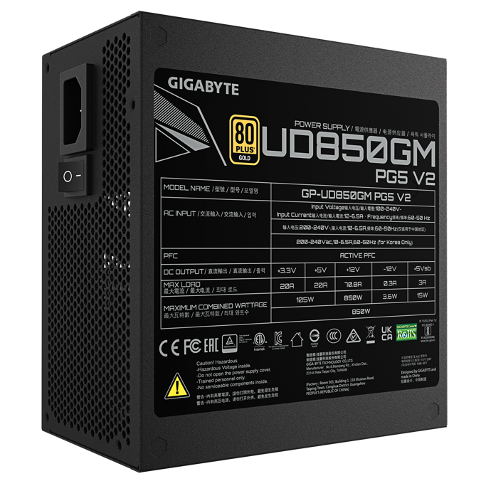 Napajanje Gigabyte 850W GP-UD850GM PG5 V2, Black, Full modular, 80 PLUS Gold, ATX 3.1, GP-UD850GM PG5 V2