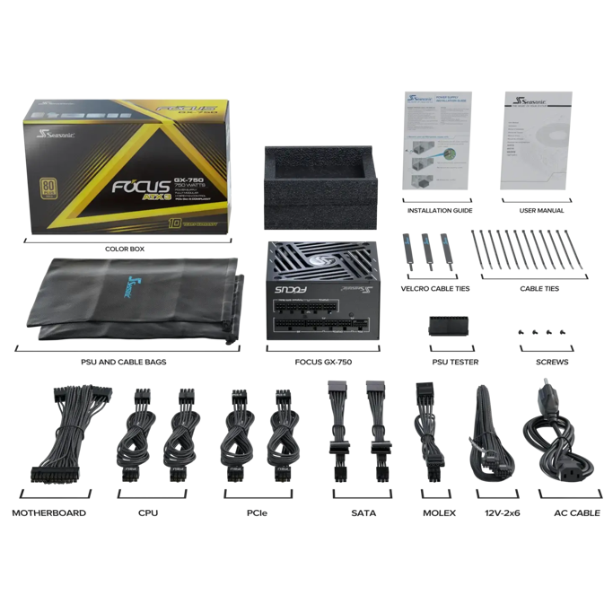 Napajanje Seasonic 750W FOCUS GX 750, Full modular, 80 PLUS Gold, ATX 3.1, FOCUS-GX-750-V4