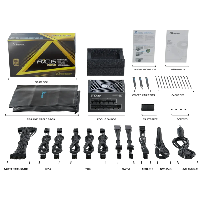Napajanje Seasonic 850W FOCUS GX 850, Full modular, 80 PLUS Gold, ATX 3.1, FOCUS-GX-850-V4