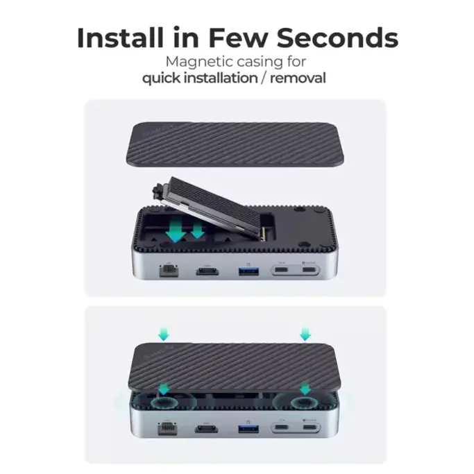 Orico docking stanica USB-C, M.2 kučište, 2xUSB 3.0, 1xUSB-C, 1xUSB 3.2, 1xSD, 1xTF, 1xHDMI, RJ45, crni, DPM2P9-BK-BP