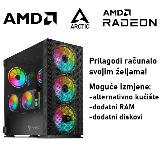 Računalo ADM Gaming Middle Range G364 AMD Ryzen 5 7500X3D, 16GB DDR5, 1TB SSD NVMe, RX7600, No OS