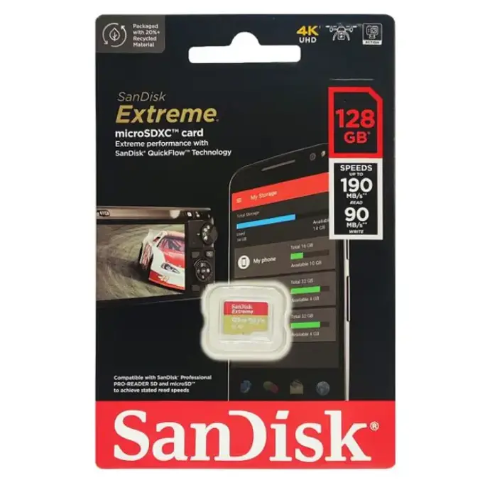 SD micro 128GB Sandisk Extreme, 190MB/s, SDSQXAA-128G-GN6MN