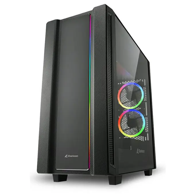 Sharkoon Midi Tower REV220, RGB, glass window, Black