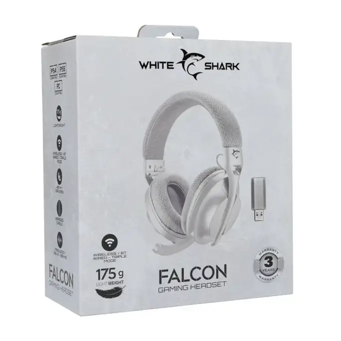 White Shark Headset WGH-2441 Falcon, Wireless /Bluetooth, Bijelo/Sive