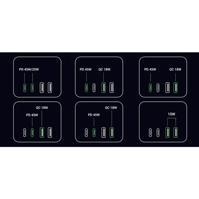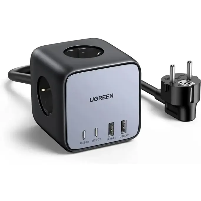 UGREEN DigiNest Cube, univerzalni punjač, 65W, 3x ŠUKO utičnica, 2x USB-C, 2x USB-A, 1.8m, crno sivi