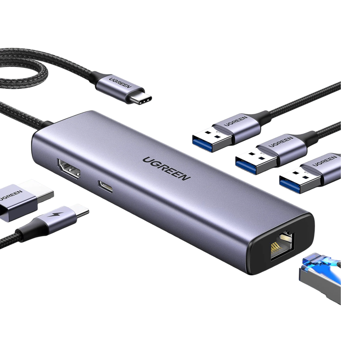 USB-C Hub Ugreen 6-in-1, USB-A, USB-C, PD, HDMI, RJ45, 15598