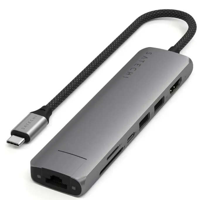 USB-C Hub Satechi 7-in-1, USB-A, USB-C, HDMI, Ethernet, SD, Space Gray